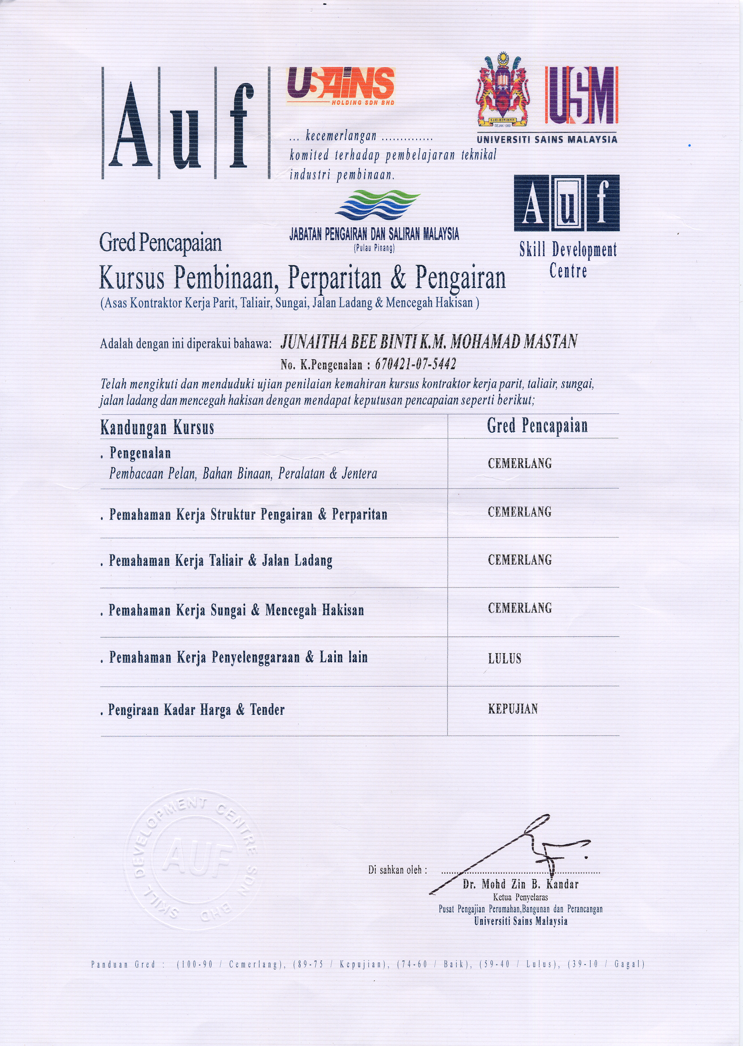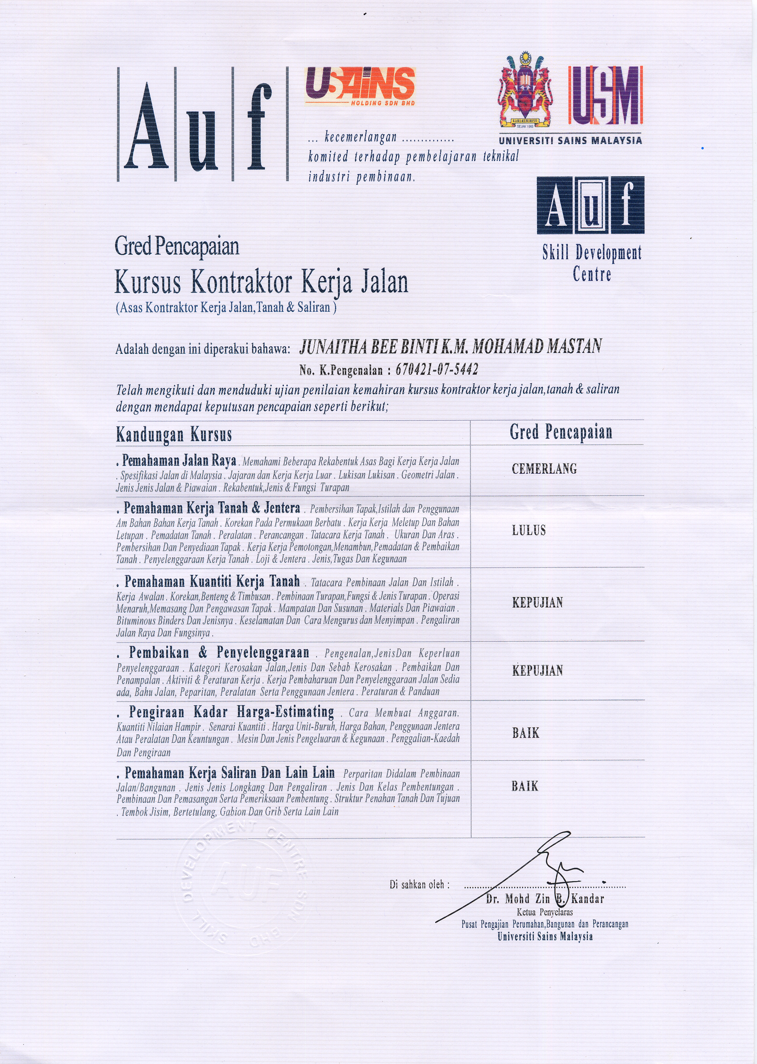 at the PKK under F-class licence (No. Sijil Pendaftaran) number 0704 P